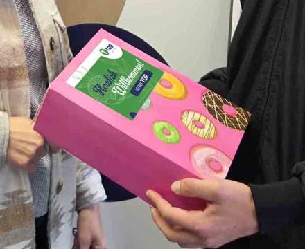 Als kleine Aufmerksamkeit zum Ausbildungsstart überreichte das Team Herrn Enge sechs Donuts – ein süßer Einstieg in eine spannende und lehrreiche Zeit.