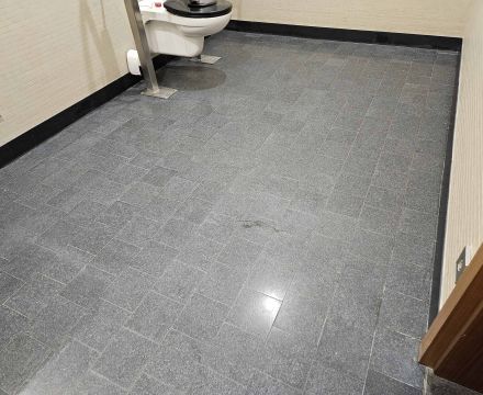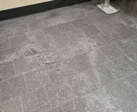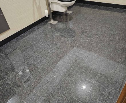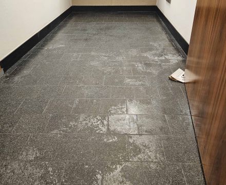 In einem Verwaltungsgebäude waren über 150 m² Fliesenboden in drei Sanitärbereichen stark beschädigt und teilweise verätzt.